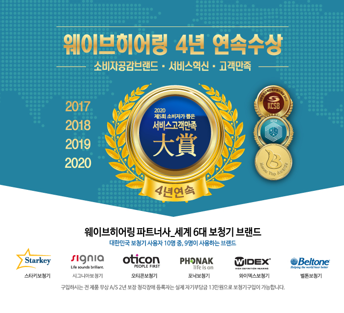 | [종로보청기] 웨이브히어링 본점, 2020 연말 '유럽 3대 충전형보청기 (포낙/벨톤/오티콘) 특가 할인' - 고객 리뷰를 기준으로 선정 (0) | 2020.12.24 |