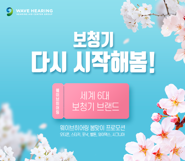 세계 6대 보청기 브랜드(오티콘, 스타키, 포낙, 벨톤, 와이덱스, 시그니아)를 공급하는 청각/보청기 전문가 그룹 웨이브히어링은 4월 봄을 맞이하여 보청기를 새로 구입하는 고객을 위해 <보청기 다시 시작해 봄!> 프로모션을 진행한다고 밝혔다.