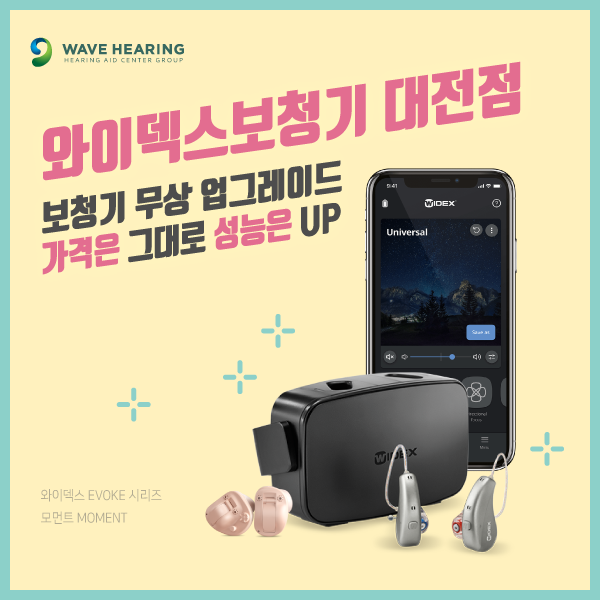 본 행사는 프미미엄 브랜드 중 덴마크 와이덱스 보청기의, 이보크(EVOKE)시리즈 보청기 선택 시 한 단계 무상 업그레이드와 모먼트(MOMENT) 440 특별 할인 이벤트로 더욱 많은 주목을 받고 있다. 모먼트(MOMENT)는 Pure Sound기능으로 보청기 음향 처리 속도를 빠르게 하여 자연스러운 청취감을 제공하고, Personal Gain Integrator기능으로 난청인 개개인의 청력을 반영하여 피드백 제거, 말소리 청취, 소음제거, 자동 소리 조절 시스템 탑재로 웨이브히어링 대전점의 베스트셀링 제품이다.
