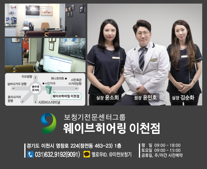 웨이브히어링 이천센터, 윤민호 원장은 청각학 석사과정을 수료하고 현재 박사과정을 진행중인 청각/보청기 전문가이다. 병원/센터 등 오랜 시간 다양한 임상경험을 바탕으로 유소아부터 노년층까지 1:1 맞춤 청각 솔루션 제공이 가능하여, 경기 이천 지역 이외에도 경기광주, 여주 등 타지역에서도 방문하는 프리미엄 보청기 센터이다. 또한 세계 6대 보청기 브랜드(포낙/벨톤/스타키/오티콘/시그니아/와이덱스)를 모두 공급하여 개개인이 선호하는 음질의 보청기를 추천할 수 있어 고객 만족도가 높다고 전했다.