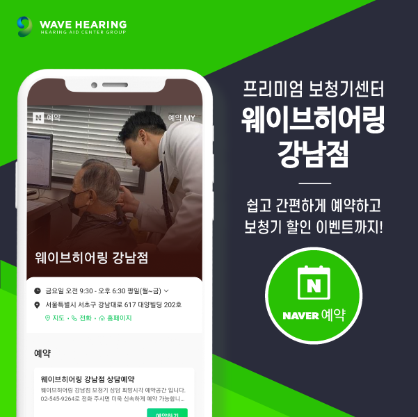 웨이브히어링 강남점, 보청기 상담 네이버로 예약하고 할인 혜택 받자!