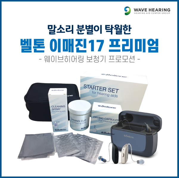세계 6대 보청기 브랜드(포낙/벨톤/스타키/오티콘/와이덱스/시그니아)를 공급하고 있는 국내 프리미엄 보청기 센터인 웨이브히어링은 국내 9개 전국 직영점(종로/강남/영등포/이천/인천/대구/대전/광주/부산)에서 벨톤보청기의 인기제품인 프리미엄등급 이매진17(Imagine17)을 한정수량 특별 할인과 여름철에 필요한 보청기 관리용품 추가 증정 이벤트를 오는 7월까지 진행한다고 밝혔다.