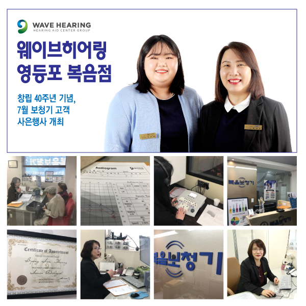 웨이브히어링 영등포복음점 황병순 원장은 ‘난청으로 인해 일상에 어려움을 겪으시는 분들과 함께해온 영등포 복음보청기(웨이브히어링). 40년이라는 긴 시간동안, 영등포역 삼보빌딩에서부터, 영등포구청역 삼성빌딩으로의 이전까지 함께해 주시고, 아껴주신 여러분들 덕분에 오늘이 있다고 생각하며, 큰 진심을 담아 감사의 마음을 전합니다.’라며 감사의 인사를 덧붙였다.