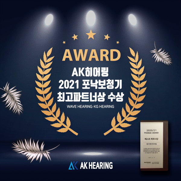 ㈜AK히어링은 지난 2019년 글로벌 제조사 벨톤, 포낙, 와이덱스 등과 전략적 파트너로 공급계약을 체결해 다양한 브랜드를 공급하기 시작, 2019년~2020년 지엔히어링코리아의 벨톤보청기 국내 최다판매로 최고 파트너상을 수상한 이력이 있으며, 이에 이어 2020~2021년 포낙보청기 역시 국내 최다판매로 최고 파트너상을 수상한 부분이다.