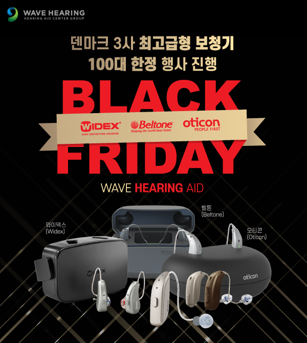 청각/보청기 전문가그룹 웨이브히어링은 1년에 단 한번 있는 블랙프라이데이 시즌을 맞아 11월 한 달 간 세계 6대 보청기 브랜드 중, 덴마크 3사 보청기 브랜드의 특정 제품을 최대 할인율을 제공하는 ‘보청기 할인행사’를 진행한다고 밝혔다.