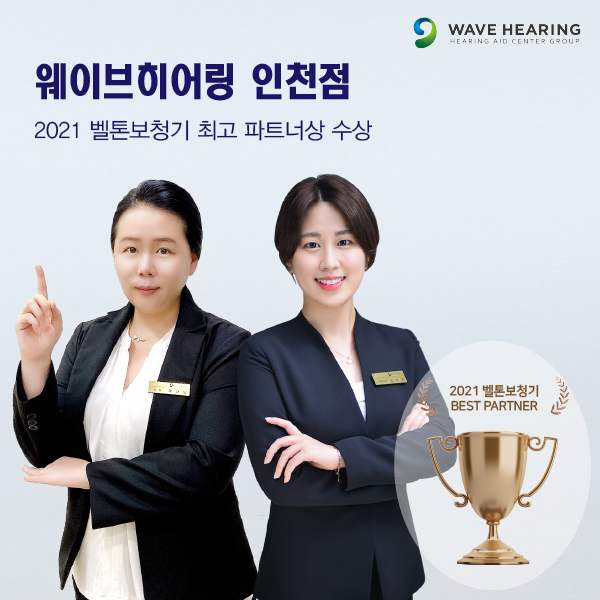 세계 6대 보청기전문 <웨이브히어링 인천센터> 가 지난 14일 글로벌 청각기업 GN히어링(벨톤보청기) 아시아 총괄 사장 웨인(Wayne Reuben)으로부터 2021 최고 파트너상을 수상했다 밝혔다.