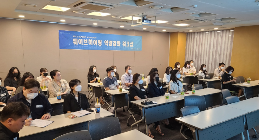 지난 7월 9일 토요일 서울스퀘어에서 보청기 전문가 그룹 웨이브히어링이 코로나 바이러스로 인해 약 2년간 온라인 미팅으로 대체되었던 분기별 역량 강화 워크샵을 개최하였다고 관계자는 밝혔다. 이 날 웨이브히어링 전국 10개 직영점 임직원들이 한자리에 모여 상반기 결산 성과 보고 및 우수 지점 시상과 격려의 시간을 가졌다고 관계자는 전하였다.
