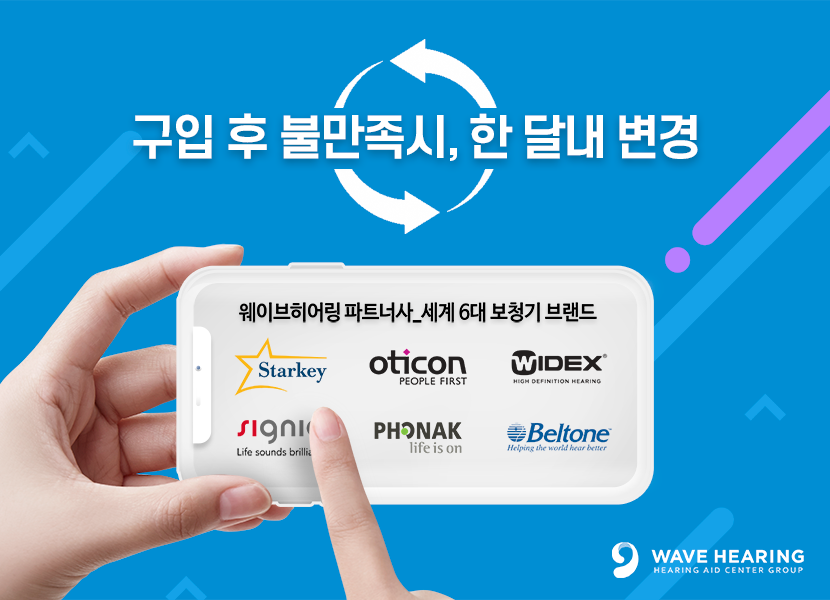 청력 손실에 대한 최선의 대안은 보청기착용이다. 보청기 착용은 시작은 있으나 끝은 없다. 끝이 없는 보청기 착용의 시작을 어디에서 누구와 하냐는 매우 중요하며 앞서 실패를 했더라도 다시 시작할 제대로 된 전문가를 만나는 것이 중요하다. 웨이브히어링은 세계 6대 보청기 브랜드를 모두 취급하며 전국 직영 체인망을 갖춘 국내 프리미엄 보청기 전문센터그룹으로 올 상반기 기준 누적방문자수 20만명을 기록하였다. 웨이브히어링은 보청기 구입 후 꼼꼼한 사후관리시스템으로 고객만족도가 높고 이와 관련하여 6년 연속 고객만족대상 수상을 이어가고 있다.
