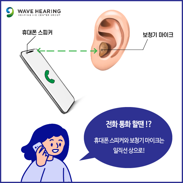 고막형보청기 착용 시 휴대폰 전화기 위치를 확인해보세요.
