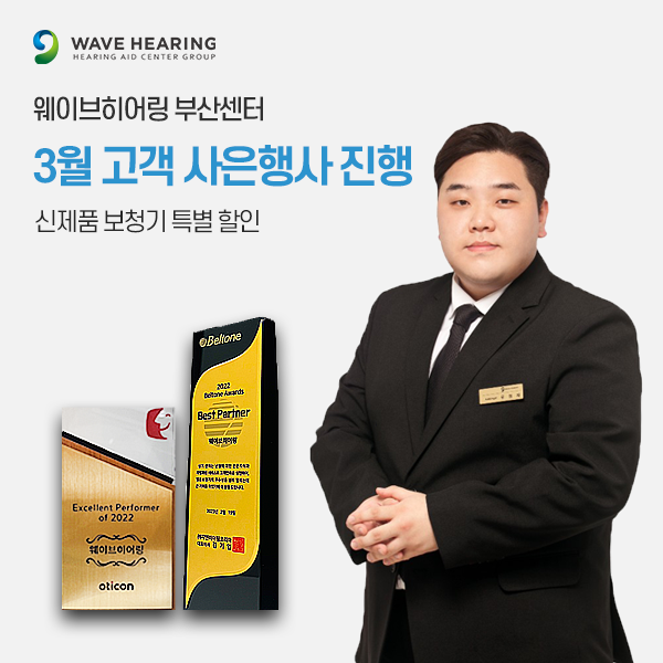 또한 배터리 종류에 상관없이 배터리 1박스와 수리 비용 (마이크, 리시버 한정) 50% 할인 등 보청기 사용자들이라면 반가워할 할인 행사 또한 함께 진행한다. 행사기간 중 부산점 방문 시, 청력평가와 상담, 보청기 조절 및 케어 비용이 무료이며 웨이브히어링의 본사 청각연구팀의 솔루션까지 함께 받아볼 수 있는 기회이다.