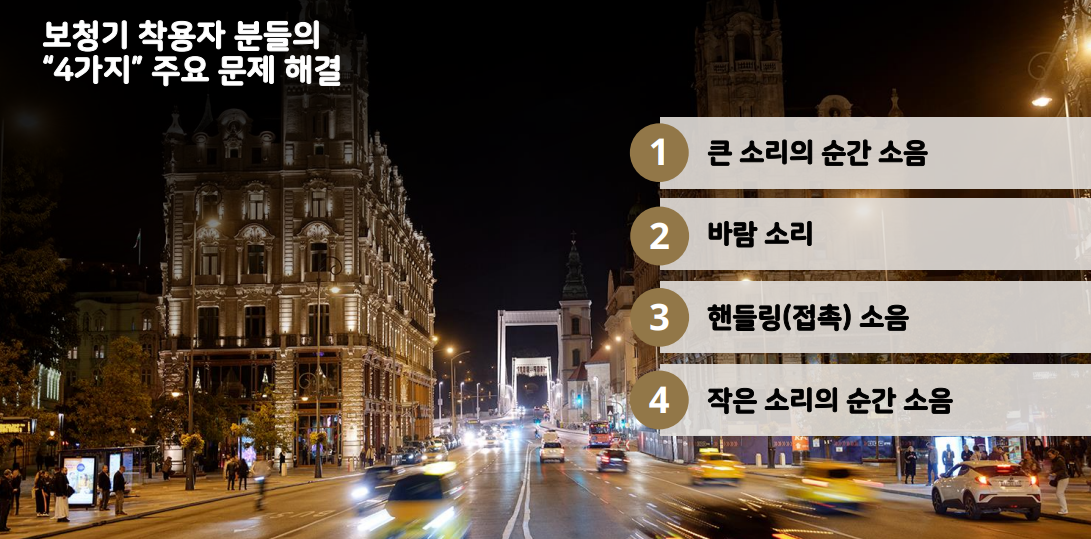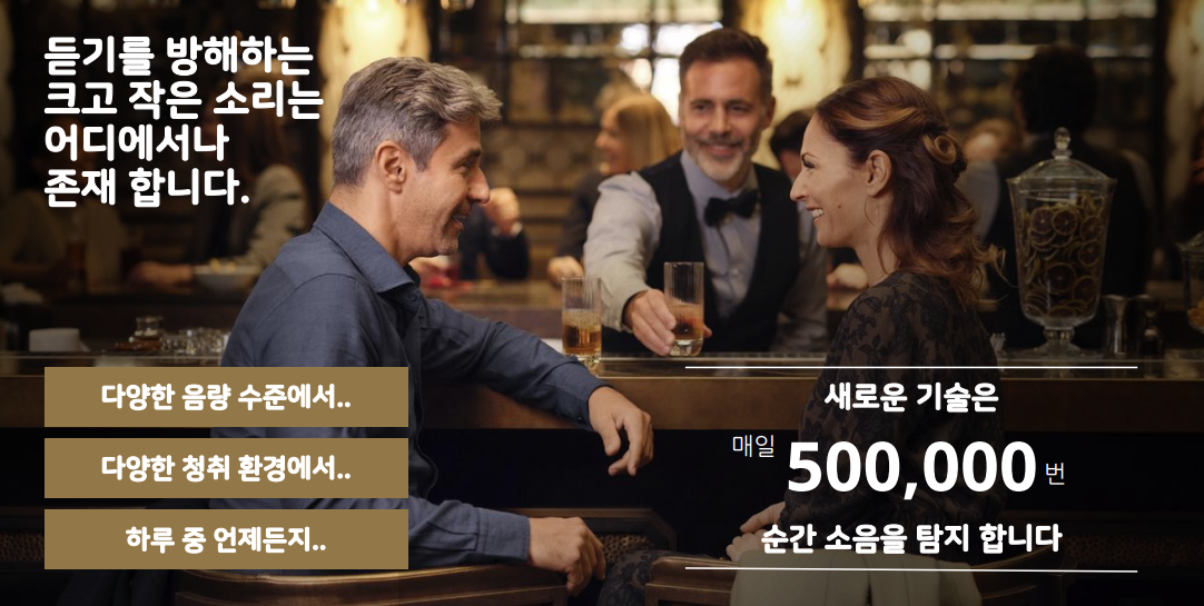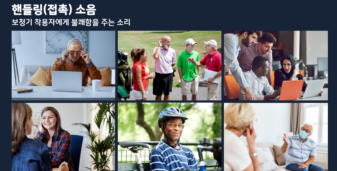 ※ 보청기 착용자가 느끼는 주된 이슈 중의 하나가 윈드 노이즈(바람이 불 때 크게 들리게 되어 말소리 분별에 영향을 많이 줍니다. 특히 창문을 열고 운전한다 거나 바람이 불 때 야외 활동 하시는 분들의 중점적인 애로사항)와 접촉 소음(최근 마스크를 모두 사용하니 마스트 탈착시, 옷을 스치는 소리, 모자를 쓸 때, 여자분들의 경우 머리를 넘긴다거나 할 때 보청기 마이크 주변에 손이 가면 발생하는 접촉 소음을 말하는데 제가 직접 들어보니 이런 부분이 많이 개선되었습니다.)