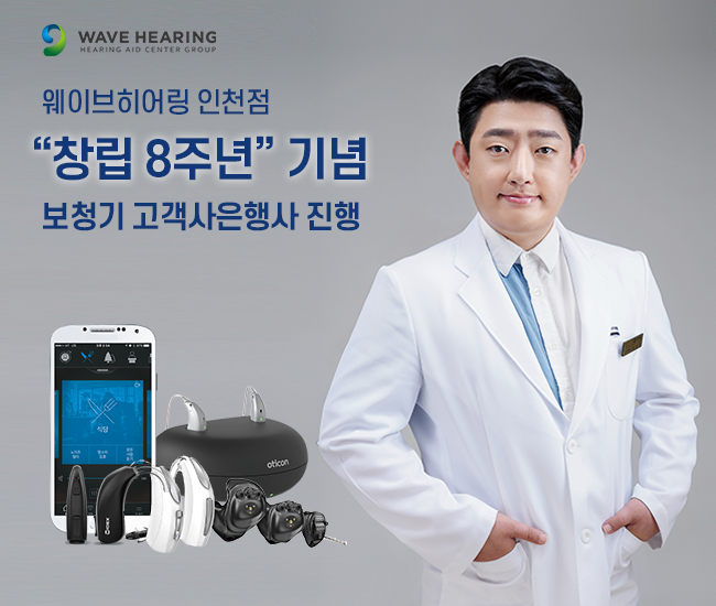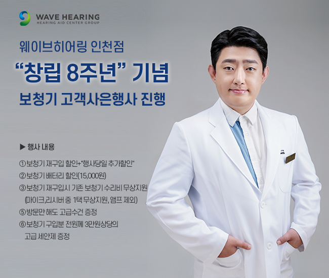 Audiologist 30명이 제공하는 보청기 청각전문센터 웨이브히어링의 고객사은행사는 하루 15명 까지만 예약 접수 받기 때문에 사은행사에 대한 문의는 웨이브히어링 인천점으로 전화 시 안내 받을 수 있다.