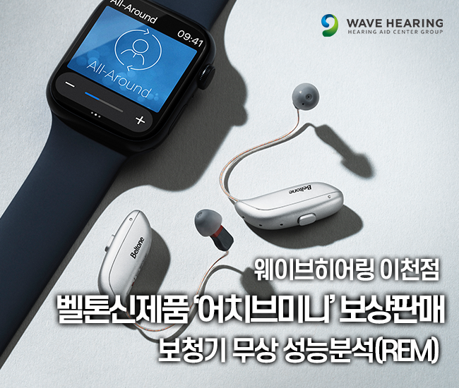 세계 6대 브랜드 (벨톤, 스타키, 와이덱스, 시그니아, 오티콘, 포낙 등)를 다루는 청각&보청기 전문가그룹 웨이브히어링 이천점이 벨톤보청기 신제품 ‘어치브(Achieve)’ 보상판매 이벤트와 함께 보청기 성능분석기기(REM)를 이용한 정밀점검을 무상으로 제공한다고 밝혔다.