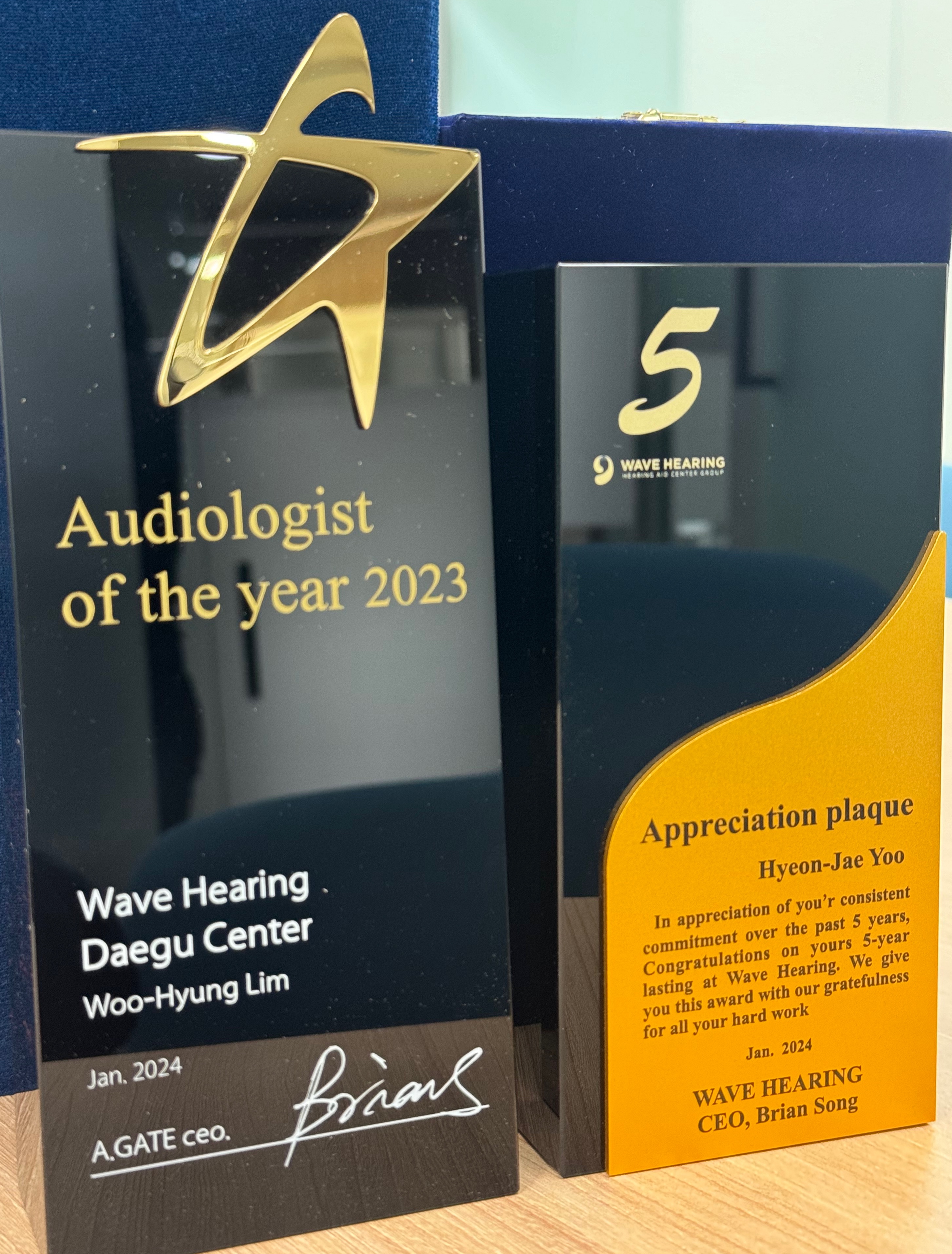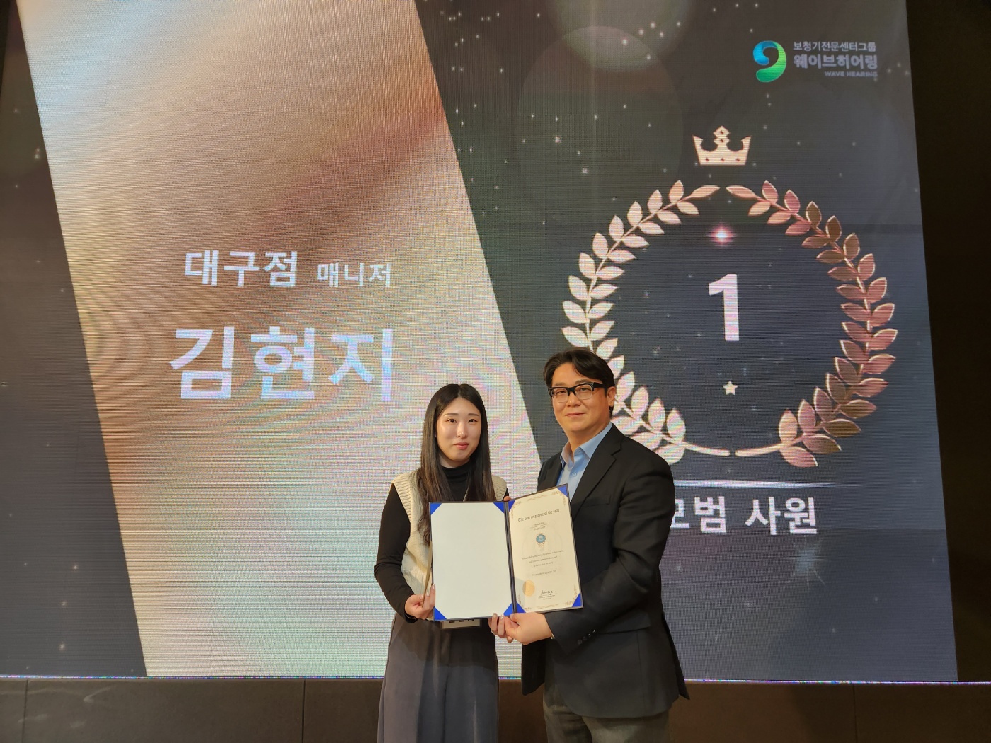 보청기 리테일 사업에서 요구되는 6개의 센터 경영 지표를 토대로 우수한 성적을 거둬 ‘Audiologist Of The year 2023’ 상을 수상한 웨이브히어링 대구점(원장 임우형), 우수사원상을 수상한 웨이브히어링 은평점(부원장 김환철), 모범사원상을 수상한 웨이브히어링 대구점(매니저 김현지) 등 높은 성과를 보여준 웨이브히어링 임직원에게 감사의 뜻을 전했다.