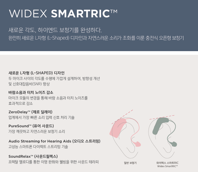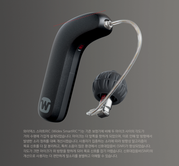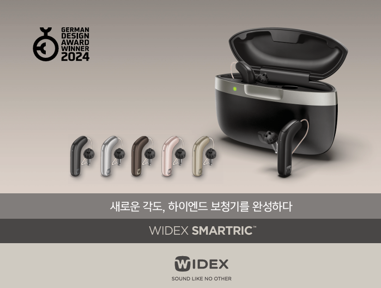 와이덱스보청기 "스마트RIC"는 보청기에서 스피커 역할을 하는 마이크를 최적화된 각도로 배치한 완전히 새로운 L자형(L-Shaped) 디자인을 적용했다. 세련된 디자인과 콤팩트한 크기의 제품으로 ‘2024 독일 디자인 어워드’ 본상(Winner)과 ‘2024 레드닷 디자인 어워드’ 의료기기&기술 및 헬스케어 2개 부문 본상을 잇달아 수상한 제품이다.