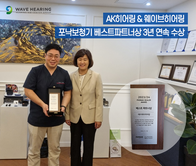 AK히어링 & 웨이브히어링 - 포낙보청기 베스트파트너상 3년 연속 수상