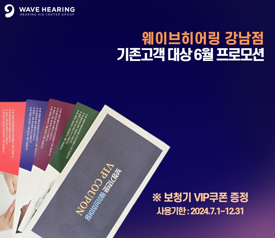 청각 & 보청기 전문센터그룹 웨이브히어링 강남 직영점에서 강남점 기존 고객들을 대상으로 6월 한정 “보청기 VIP쿠폰”을 증정한다고 밝혔다.