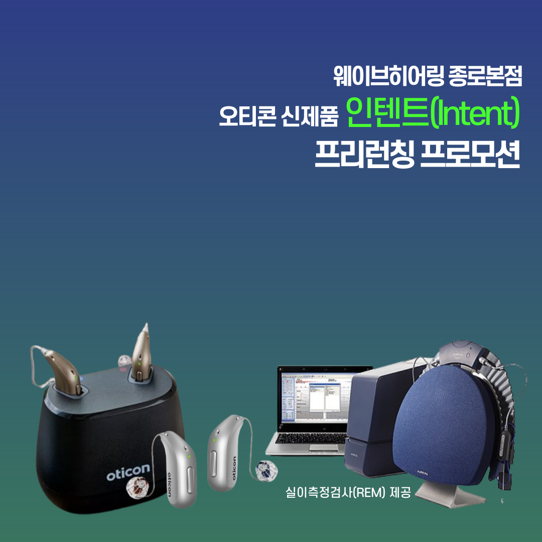 세계 6대 보청기브랜드를 한 곳에서 비교 구입 가능한 멀티 브랜드스토어 웨이브히어링 종로본점이 2024년 오티콘(Oticon) 신제품 “인텐트(Intent)” 공식 사전 판매 대리점 선정을 기념하여 할인 프로모션을 진행한다고 밝혔다.