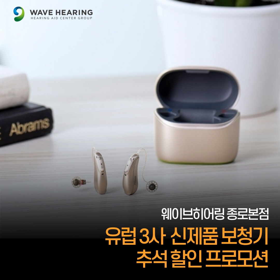 세계 6대 보청기를 한 곳에서 비교 구입 가능한 웨이브히어링서울 종로본점이 다가오는 추석을 맞이해 유럽 3사 신제품 보청기 할인 프로모션을 진행한다고 밝혔다.