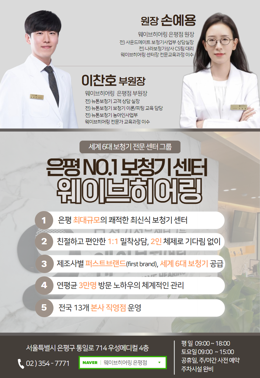 프로모션 관련 내용은 웨이브히어링 은평점 고객센터를 통해 문의 가능하며, 네이버 플레이스에 웨이브히어링 은평점을 검색 후 간편하게 상담 예약 가능하다.
