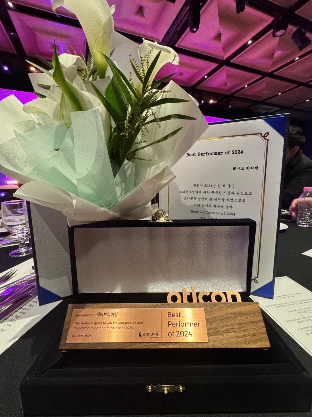 웨이브히어링은 이번 세미나에서 ‘Best Performer of 2024’ 상을 수상하며, 9년 연속 수상이라는 대기록을 달성했다. 이는 웨이브히어링이 2024년 한 해 동안 오티콘의 성장과 발전에 크게 기여한 공로를 인정받은 결과다.