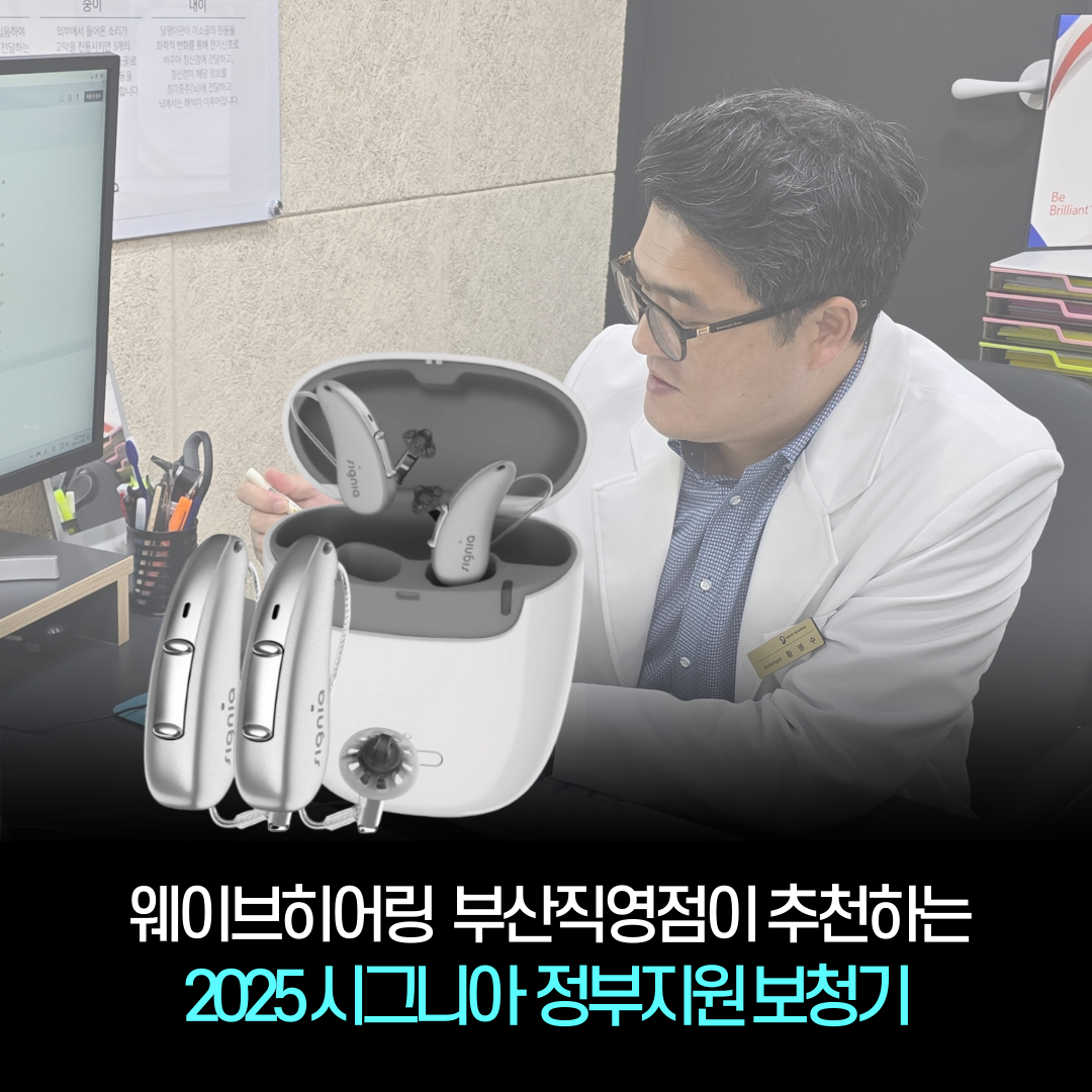 세계 6대 보청기 브랜드를 한 곳에서 비교 구입 가능한 웨이브히어링 부산직영점이 2025년 개정된 정부지원 보청기 중 ‘시그니아(Signia) 퓨어 7AX’ 모델을 추천한다고 전했다.