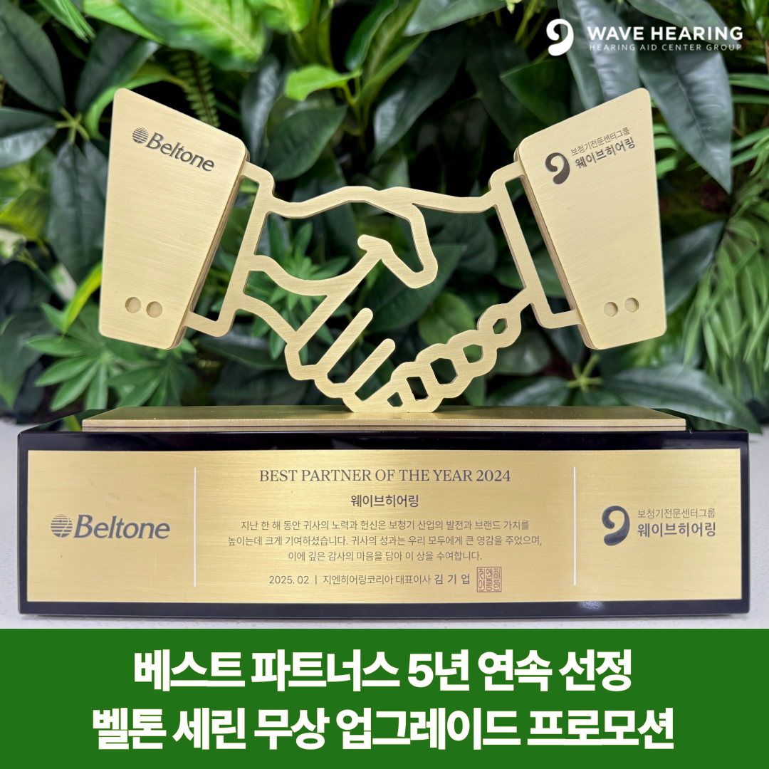 보청기전문센터 웨이브히어링 영등포점이 벨톤보청기의 ‘세린(Serene)’ 무상 업그레이드 프로모션을 진행한다고 밝혔다. 이번 프로모션은 지난 28일 개최된 2025 벨톤 포럼에서 웨이브히어링이 ‘베스트 파트너스(Best Partners)’ 상을 5년 연속 수상한 것을 기념하여 마련된 특별 이벤트로, 고객들은 세린9을 세린17으로 무상 업그레이드 받을 수 있는 기회를 제공받는다.