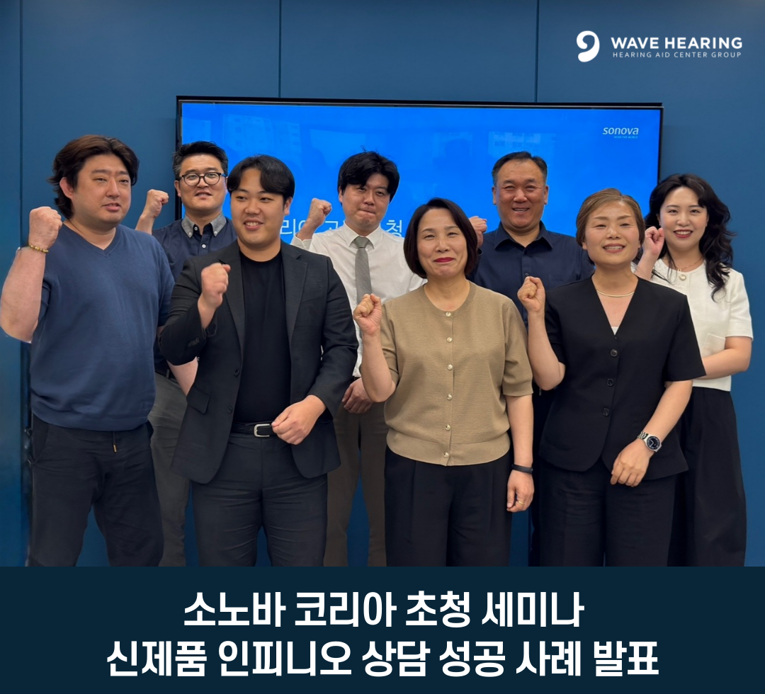 보청기 전문센터 [웨이브히어링 종로본점]이 글로벌 청각 솔루션 기업 포낙(Phonak)의 초청으로 최근 소노바코리아 본사에서 진행된 ‘인피니오 기술 세미나’에 참석하여 포낙의 프리미엄 신제품 ‘인피니오(Infinio)’에 대한 심층적인 기술 소개와 함께, 실제 고객 현장에서의 피팅 경험과 활용 사례를 공유하는 자리로 마련되었다.