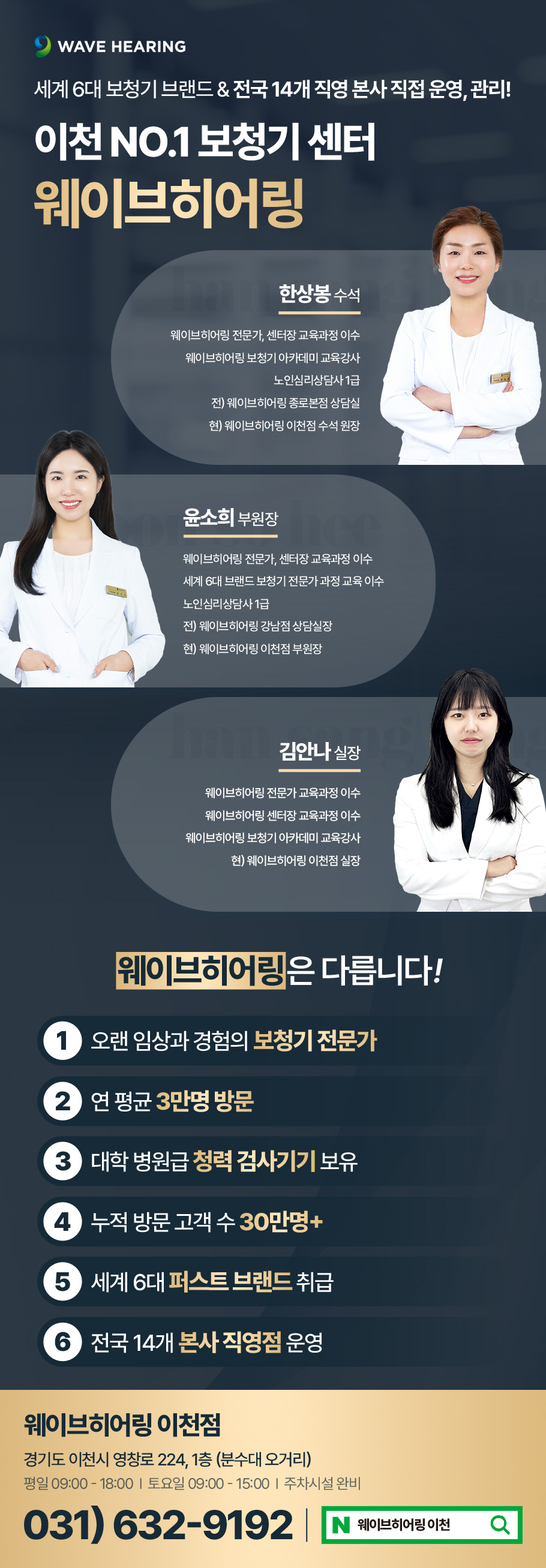 오티콘보청기 이천점은 웨이브히어링의 이천 지역 직영점으로, 웨이브히어링은 전국 14개 직영 네트워크를 운영하며, 브랜드 별 비교 청취 상담, 정밀 청력 검사, 장기 사후 관리까지 아우르는 통합 청각 케어 서비스를 제공하고 있다.