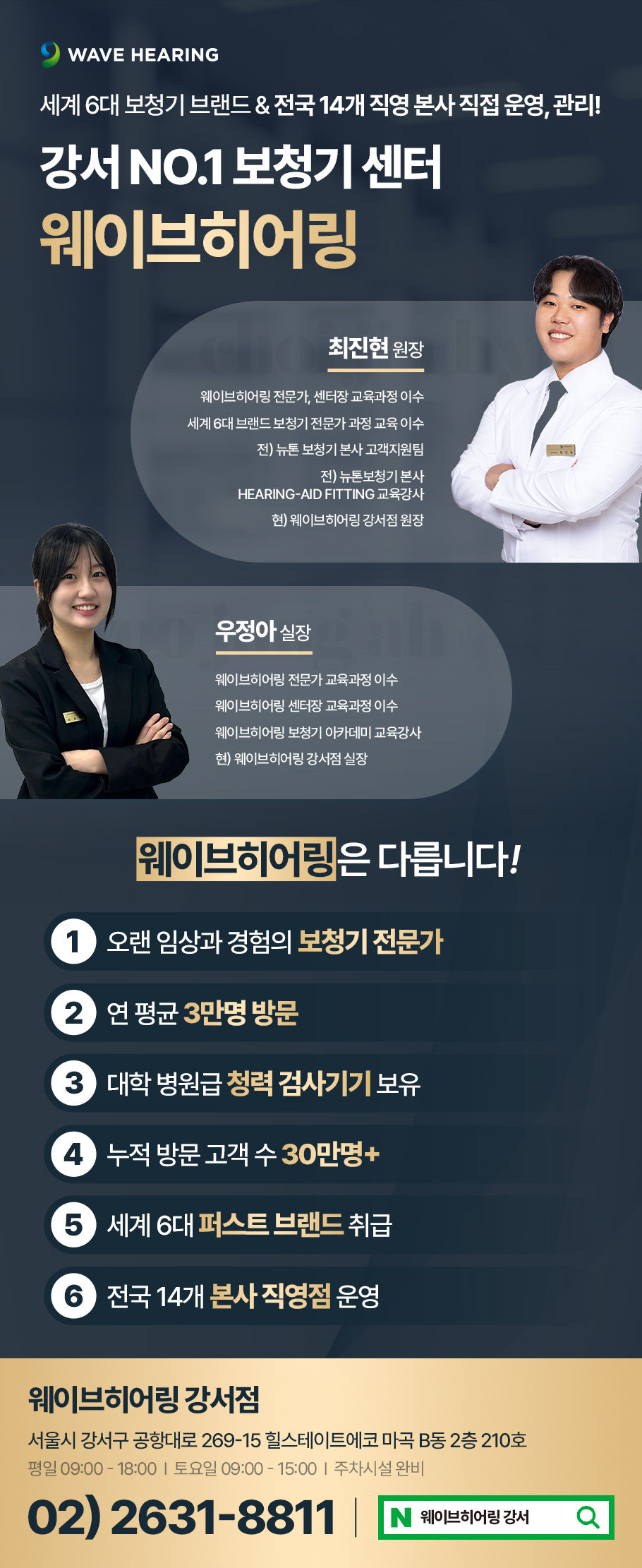 웨이브히어링 강서점은 단순히 보청기 판매에 그치지 않고, 정밀 청력 검사와 데이터 기반 맞춤 상담, 장기적인 사후 관리까지 제공하는 것이 가장 큰 강점이다. 또한 전국 14개 직영점이 동일한 서비스 품질을 유지하는 네트워크를 갖추고 있어, 타 지점에서도 동일한 관리와 지원을 받을 수 있다.