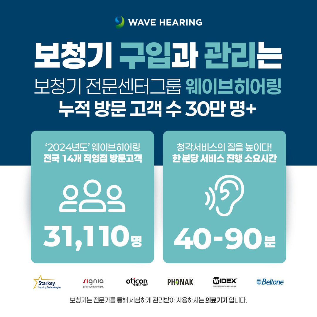 한편 웨이브히어링은 최근 사당점 확장이전 오픈을 성공적으로 마치고 서비스 공간을 넓혔으며, 지난 7월에는 수원시청역 인근에 14번째 직영점 수원점을 새롭게 오픈하며 전국 네트워크를 확대해 나가고 있다.