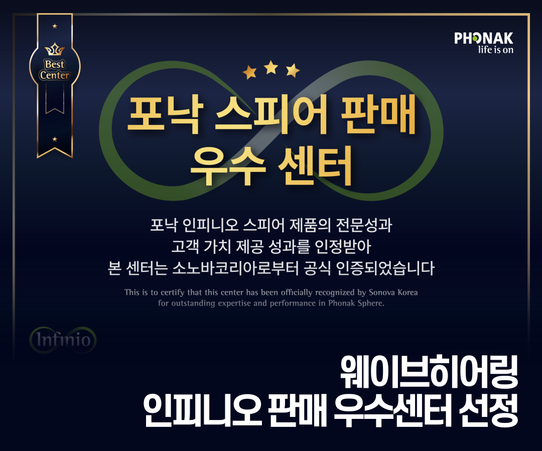 웨이브히어링 '인피니오' 우수판매센터 선정