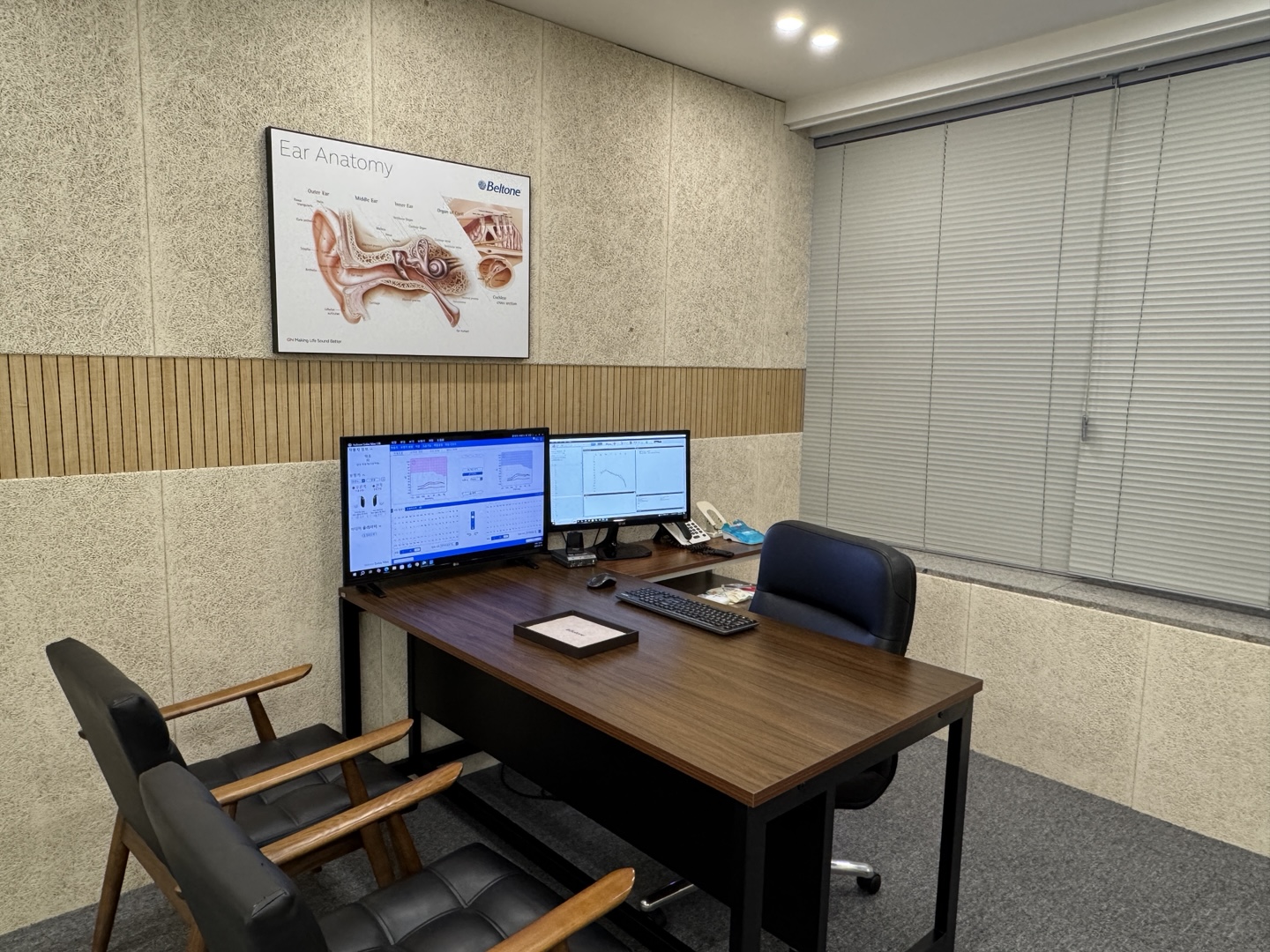 문제는 여기서 사용하는 검사가 대부분 “조용한 검사실에서 들리는 최소 소리(dB )”만을 보는 순음 검사 한 가지에 집중된다는 점입니다. 말소리 분별검사가 재대로 진행되는 곳이 드뭅니다. 어음검사를 꼭 받으셔야 한다는 사실을 대부분 간과합니다. (검사기 자체가 어음검사가 안되는 장비들도 있고, 장비가 있다 한들 어음검사를 수행하는 분들이 없어서 이기도 합니다.)