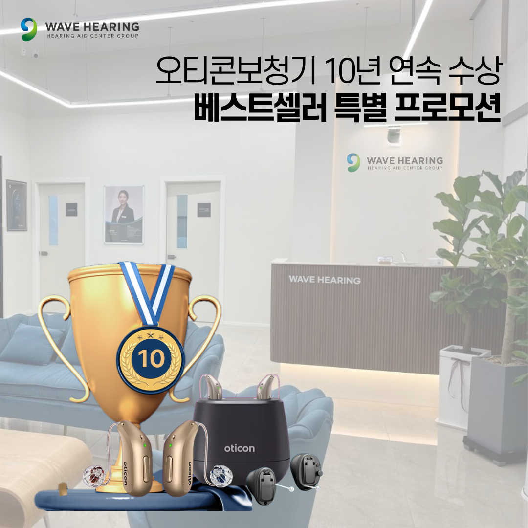 | 웨이브히어링 종로본점- 오티콘보청기 ‘10년 연속 수상’ 기념 : "보청기 베스트셀러" 특별 프로모션 (1) | 2026.01.21 |