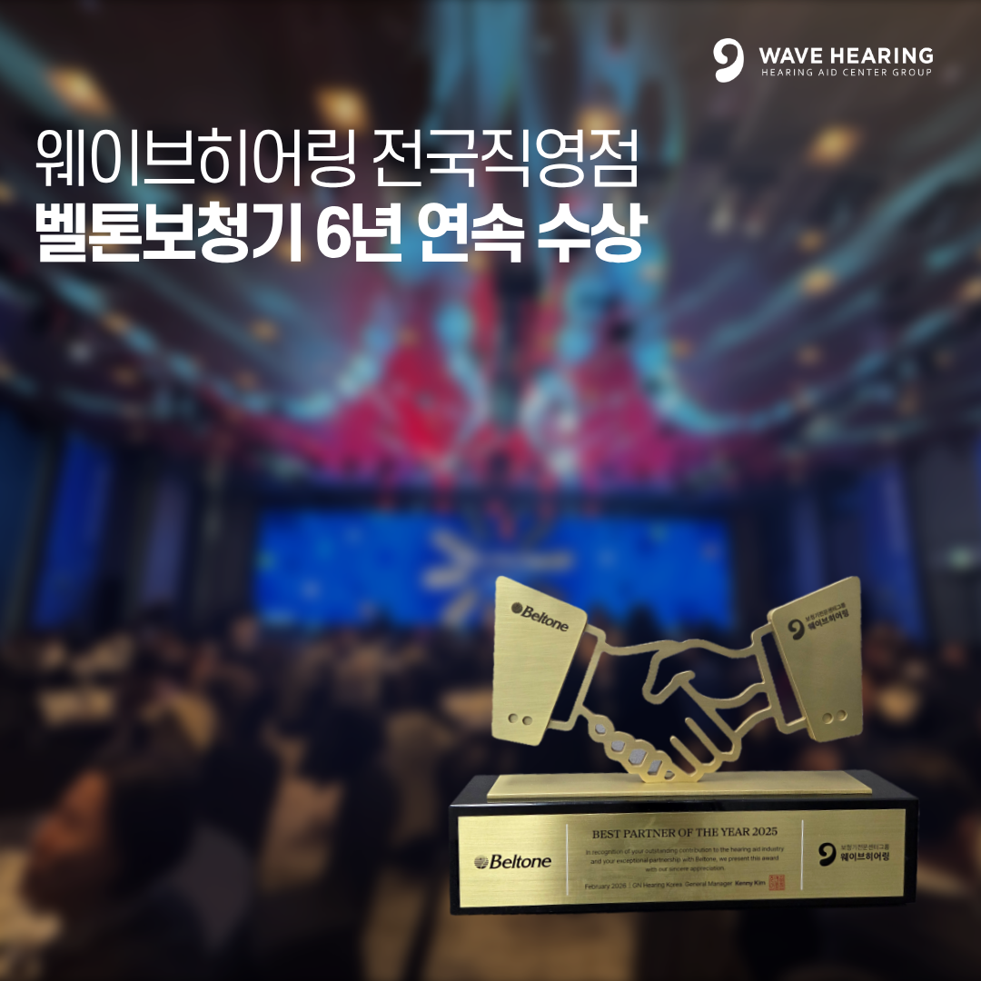 한편, 웨이브히어링은 세계 6대 보청기 브랜드 중 3개 브랜드(벨톤, 오티콘, 스타키)에서 연속 수상을 기록한 청각 전문 센터로, 전국 14개 직영점을 통해 표준화된 프리미엄 청각 서비스를 제공하고 있다.