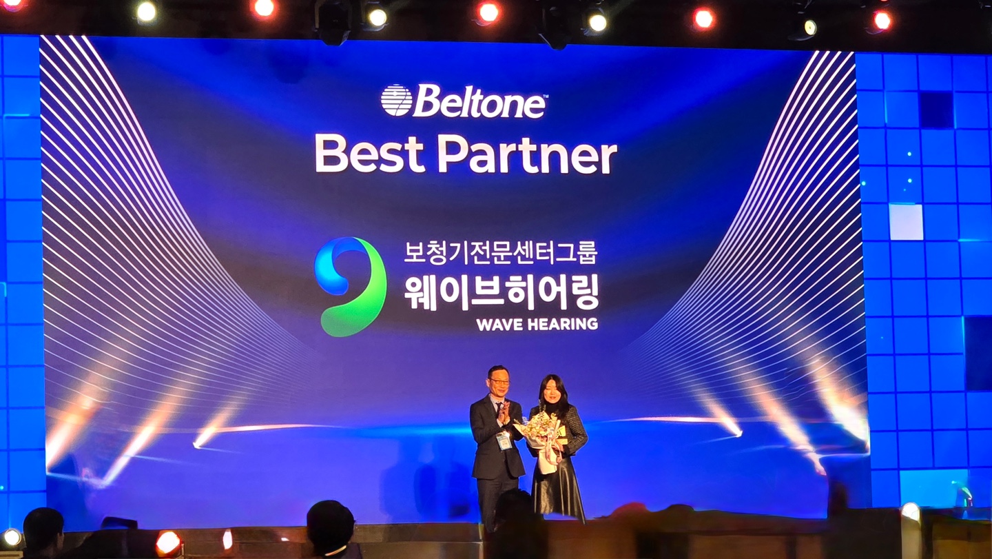 보청기 전문센터그룹 웨이브히어링이 글로벌 청각 솔루션 기업 지엔(GN)의 벨톤보청기(Beltone)로부터 ‘6년 연속 베스트 파트너(Best Partner)’ 상을 수상하는 쾌거를 이뤘다고 3일 밝혔다.