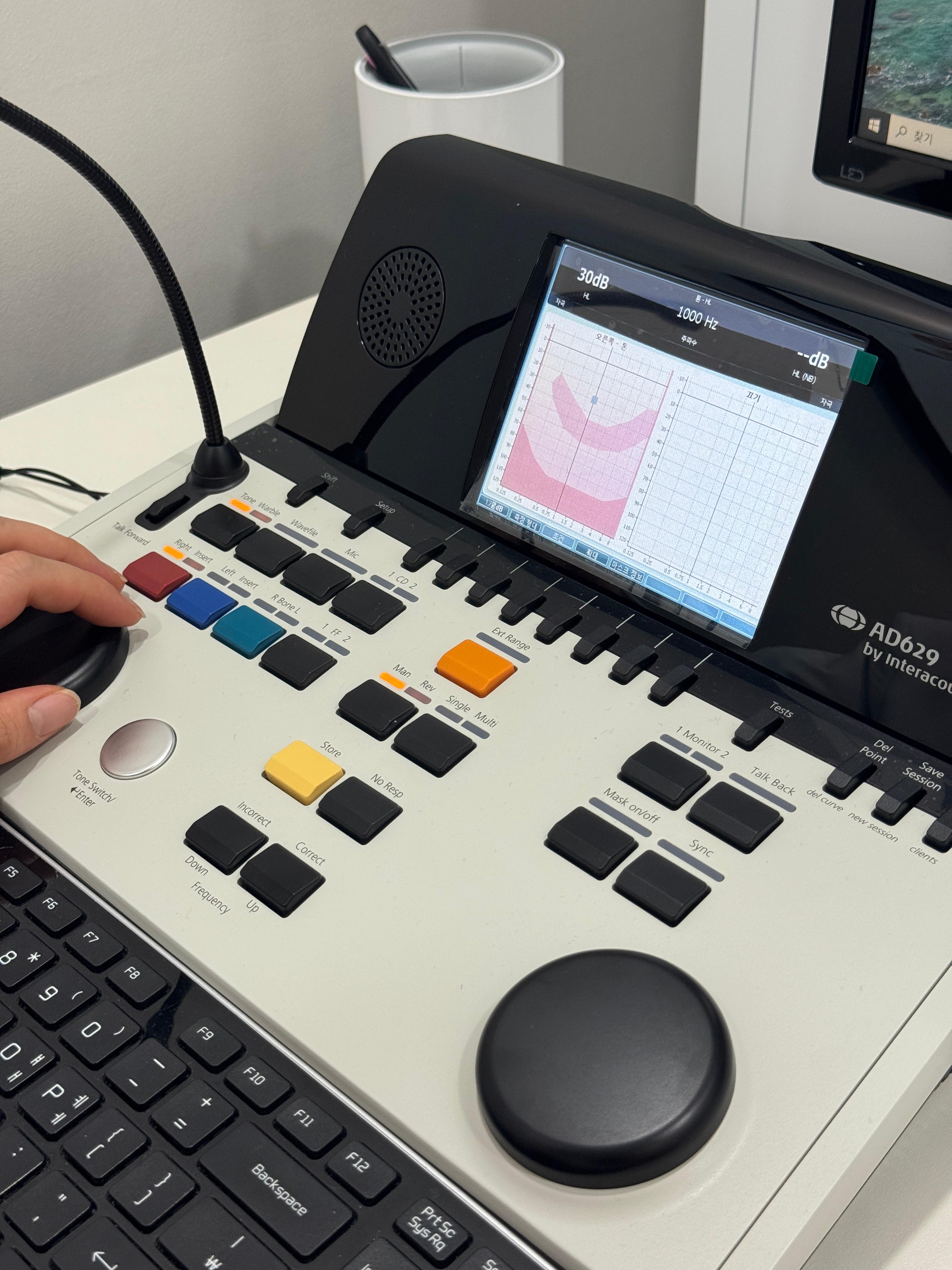 보청기 선택 후에는 피팅 과정이 진행됐는데, 여기서 또 놀랐어요. 단순히 착용만 시켜주는 게 아니라 동일한 청력검사 결과를 토대로 다양한 브랜드를 번갈아 가면서 테스트 해 주시면서 가장 만족스러운 음질의 제품을 찾아주시는  청각서비스를 제공해 주시더라고요. 이 과정이 왜 중요하냐고 여쭤보니, 사람마다 선호하는 음향학적 요소들이 다르다 보니 사람마다 소리에 대한 느낌이나 효과가 달라질 수 있다고 하셨어요. 그래서 제품별로 실제로 착용해 보고 귀 안 반응을 확인하며 조정해야 훨씬 자연스럽고 편안한 소리를 만들 수 있다고 설명해주셨답니다.