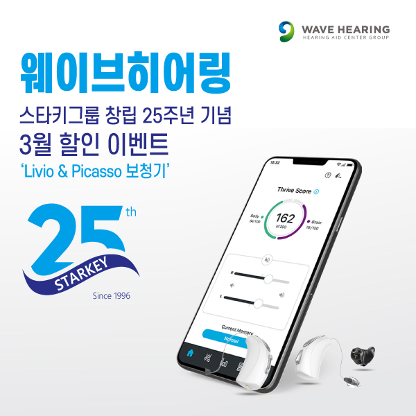 웨이브히어링 종로본점‘ 스타키보청기 리비오 & 피카소 (Livio & Picasso)’3월 할인 이벤트 <스타키그룹 창립 25주년 기념>