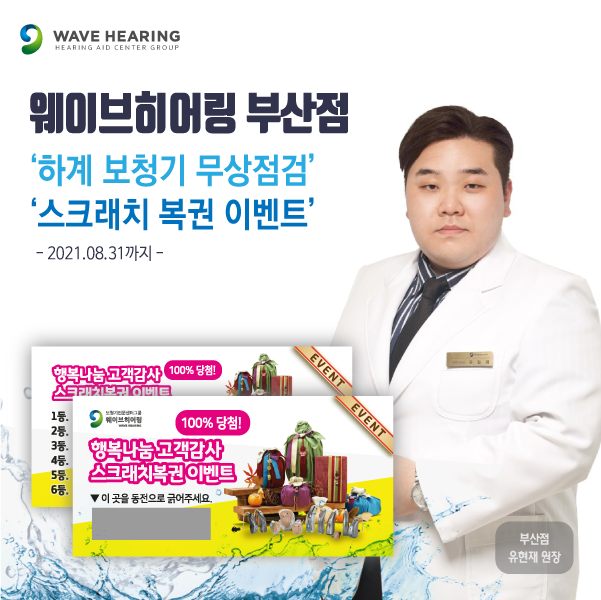 [여름철 보청기점검] 웨이브히어링 부산점- 보청기 무상점검 받고, 100% 당첨 스크래치 복권 이벤트
