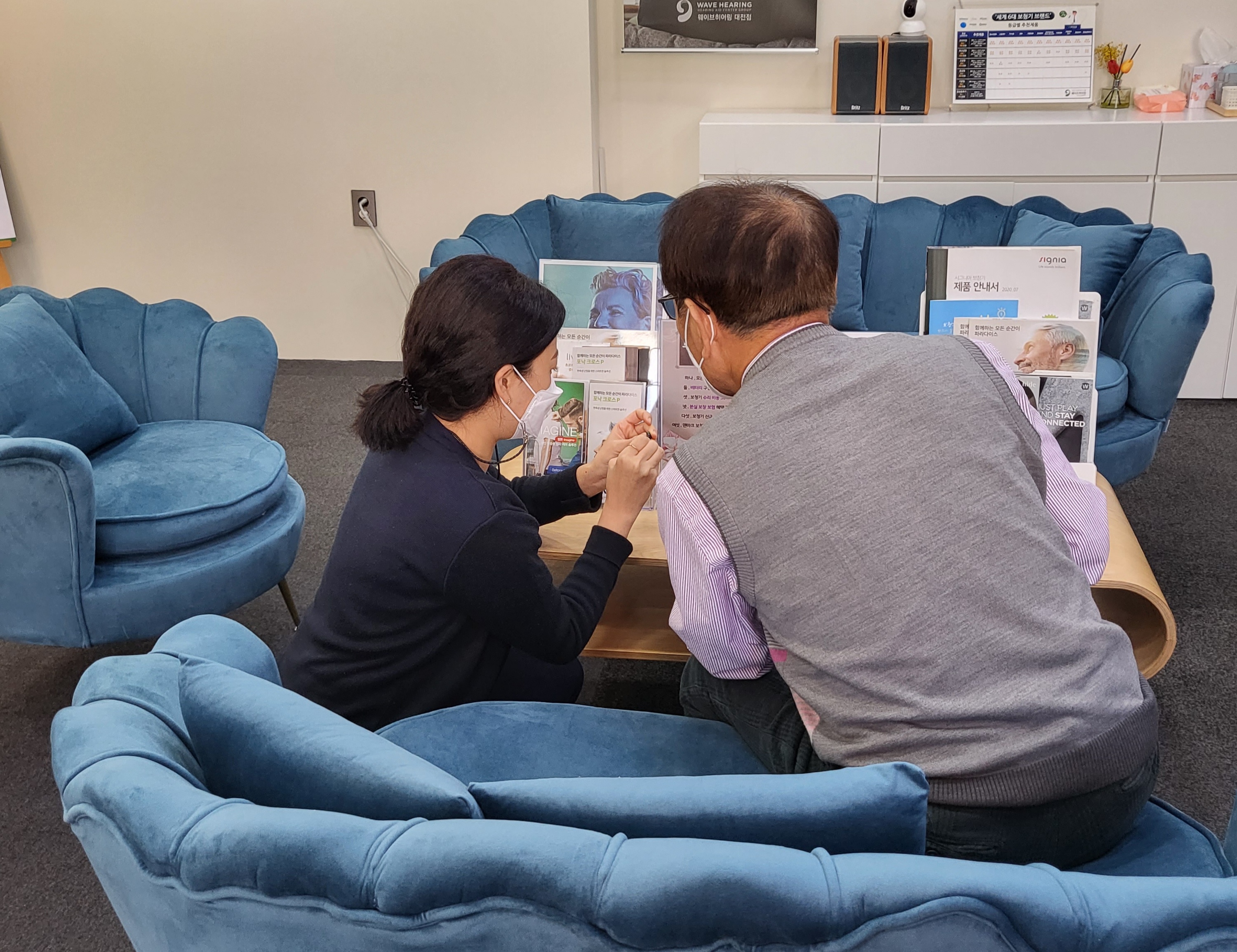 웨이브히어링 대전센터 김연화 원장은 보청기는 착용자 본인에게 가장 적합한 음질과 기능을 가진 제품 선택도 당연 중요하지만, 보청기 구매 후에 편안한 소리를 찾아가는 과정인 피팅(fitting)과 착용자의 귀 내부 환경에 따른 습기와 귀지 막힘으로 인한 정기 점검이 매우 중요한 부분이라고 전했다.