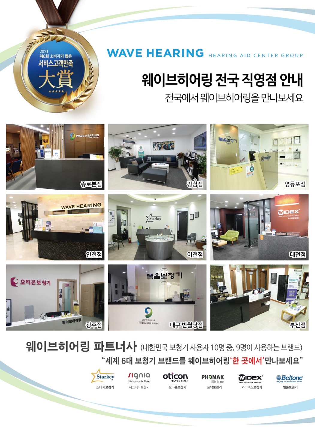 보청기·청각 전문그룹 웨이브히어링은 전국 10개 직영운영으로 매년 약 3만명의 고객이 보청기 사후관리 서비스를 제공받고 있다. 10개 직영점 중 하나인 웨이브히어링 광주점(오티콘보청기 광주북구점)이 창립6주년을 맞이하여 보청기 사은 행사를 통한 기존 고객 및 처음 방문하는 모든 고객분들 대상으로 고객감사 이벤트를 다가오는 11월18일부터 19일까지 진행한다고 밝혔다.