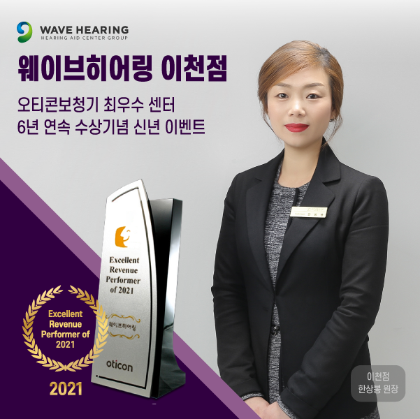 청각/보청기 전문가그룹 웨이브히어링 이천점(오티콘보청기 이천점)은 지난 9일 비대면 온라인으로 개최된 2022 오티콘보청기 세미나에서 6년 연속 최우수 센터상을 수상했다고 밝혔다.
