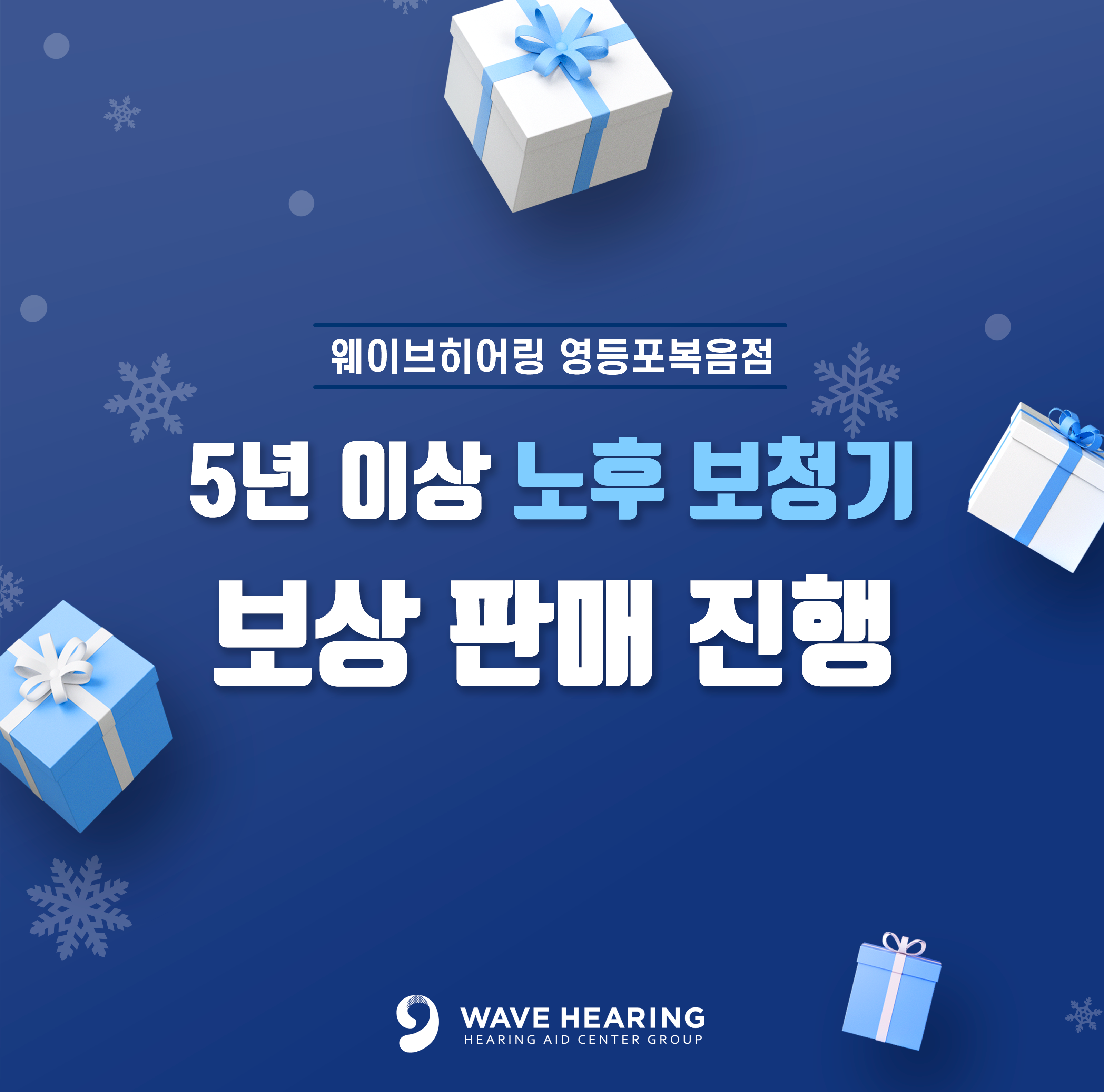 영등포구청역에 위치한 웨이브히어링 영등포점이 연말을 맞이하여 특별 보상판매 할인 행사 소식을 전하였다. 5년 이상 노후된 보청기 혹은 고장나서 서랍 속에 방치된 보청기 또한 보상판매 적용하여 추가할인을 받을 수 있다.