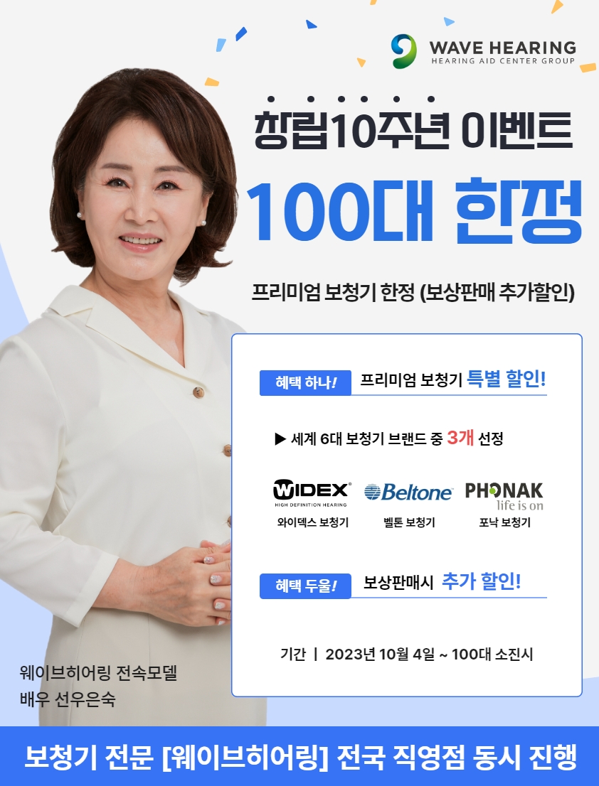 웨이브히어링 대전점, 프리미엄보청기 100대 한정 특별 할인 이벤트
