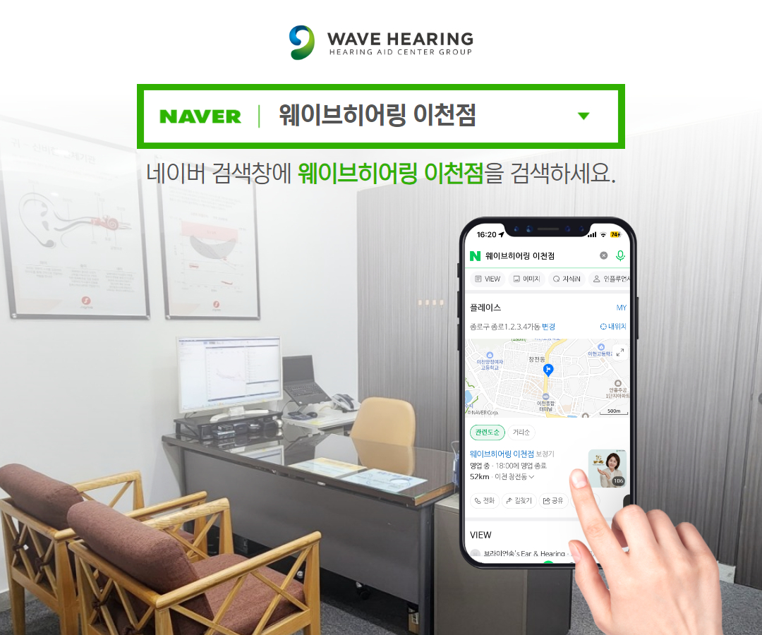 웨이브히어링 이천점을 포함한 전국 15개 지점에서는 네이버 검색창에 웨이브히어링을 검색하면 온라인으로 보청기 상담 및 조절을 위한 방문 예약을 진행할 수 있으며, 이는 원하는 시간과 날짜에 고객이 직접 하기 때문에 대기 시간 걱정 없이 빠르고 쉽게 예약이 가능하다. 더불어, 온라인 예약으로 방문하여 보청기 구입 시, 추가할인이 중복으로 적용되니 많은 이용 부탁드린다고 덧붙였다.