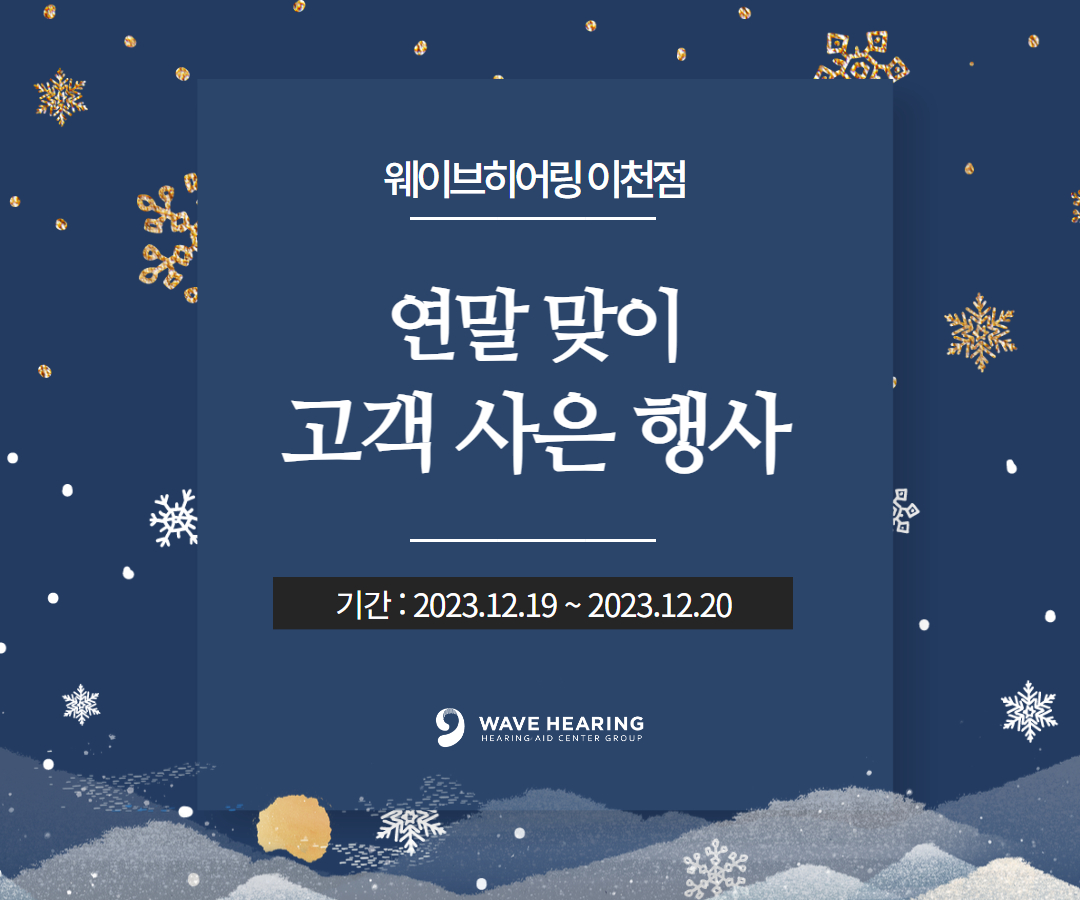 청각 & 보청기 전문가 그룹 웨이브히어링 이천점은 2023년 한 해 동안 방문한 고객들에게 감사인사를 전하는 의미로 12월 19일부터 20일까지 양일간 고객 사은 행사를 진행한다고 밝혔다.