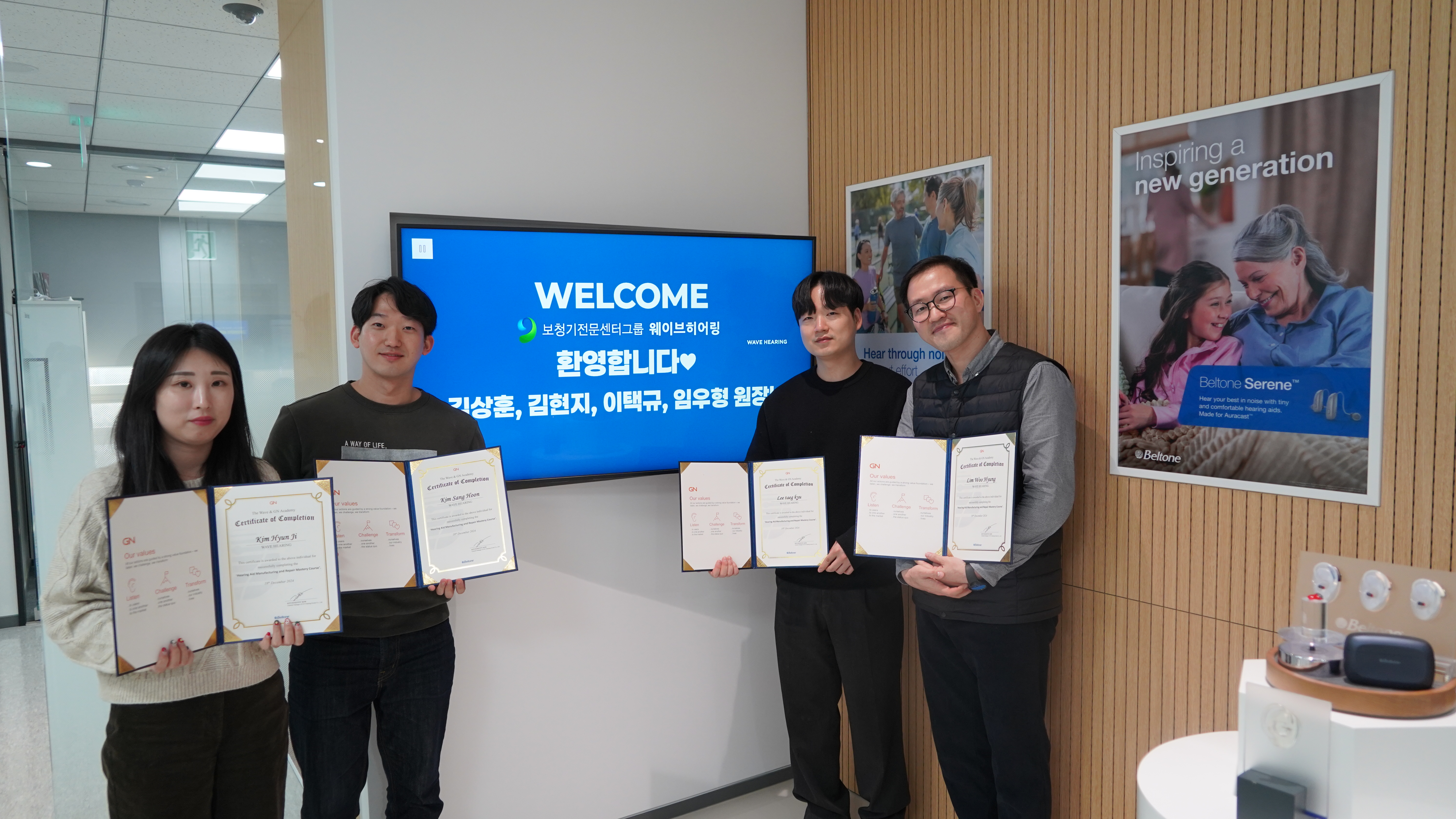 보청기 전문센터그룹 웨이브히어링 대구직영점 원장단이 GN히어링코리아(벨톤보청기)와 함께 보청기 실무교육 ‘W&G 아카데미’를 성공적으로 수료했다고 밝혔다.