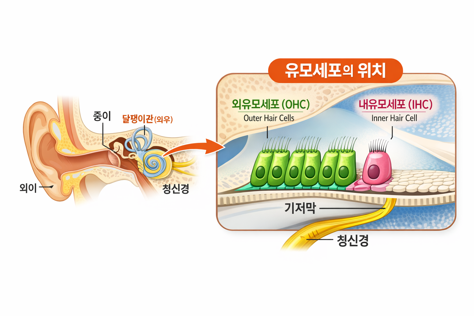 결론부터 이야기하자면, 말소리 분별력이 떨어지는 가장 큰 원인은 달팽이관 안에 있는 유모세포의 손상이다. 이 유모세포는 말소리를 세밀하게 나누고 정리해 주는 역할을 하는데, 손상이 생기면 소리의 높낮이나 말의 미묘한 차이를 정확하게 구분하기 어려워진다. 그래서 소리는 들리지만, 말이 흐릿하게 느껴지는 현상이 나타난다.