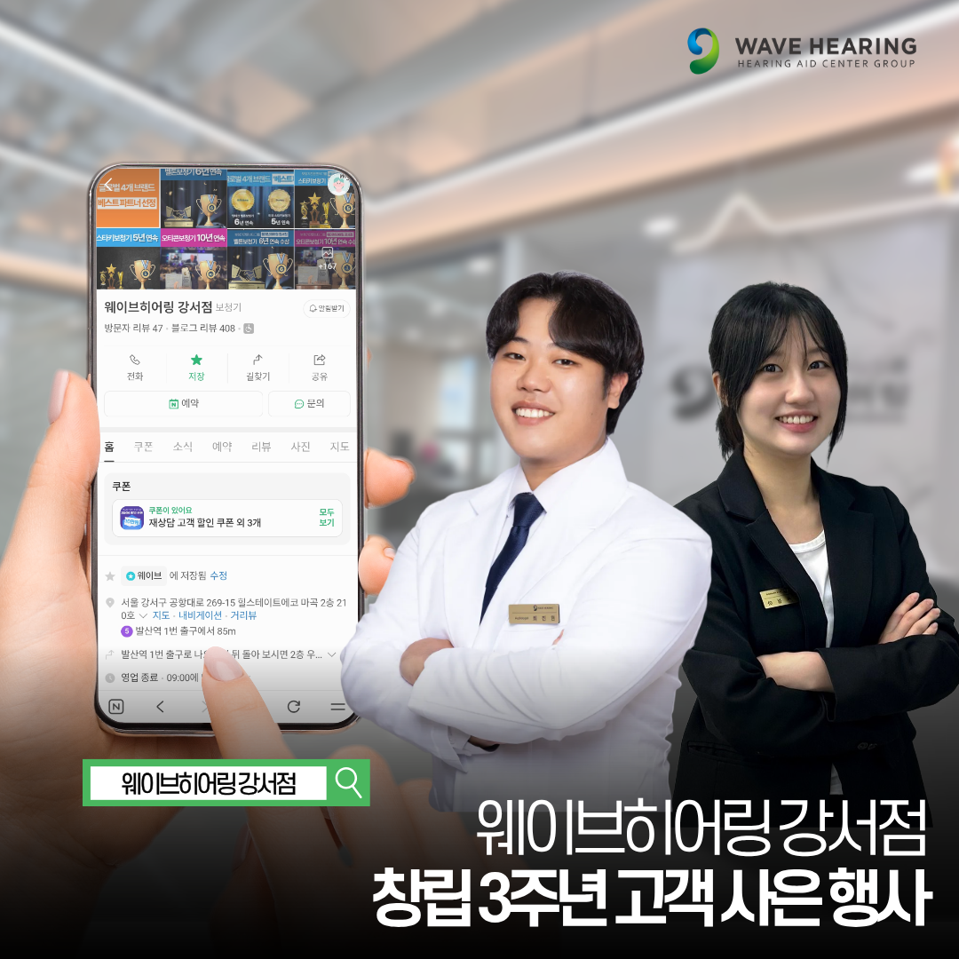 [강서보청기 보청기할인] 웨이브히어링 강서점 - 창립 3주년 기념 고객 사은 행사 진행; 보청기 재구입 계획하신 분 모이세요!!