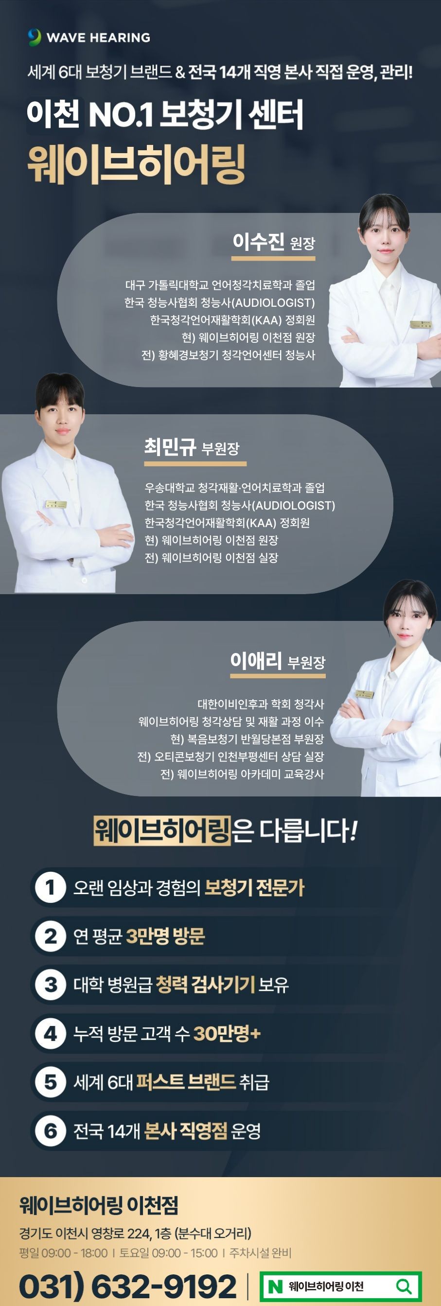 안녕하세요 :) 웨이브히어링 이천점입니다.